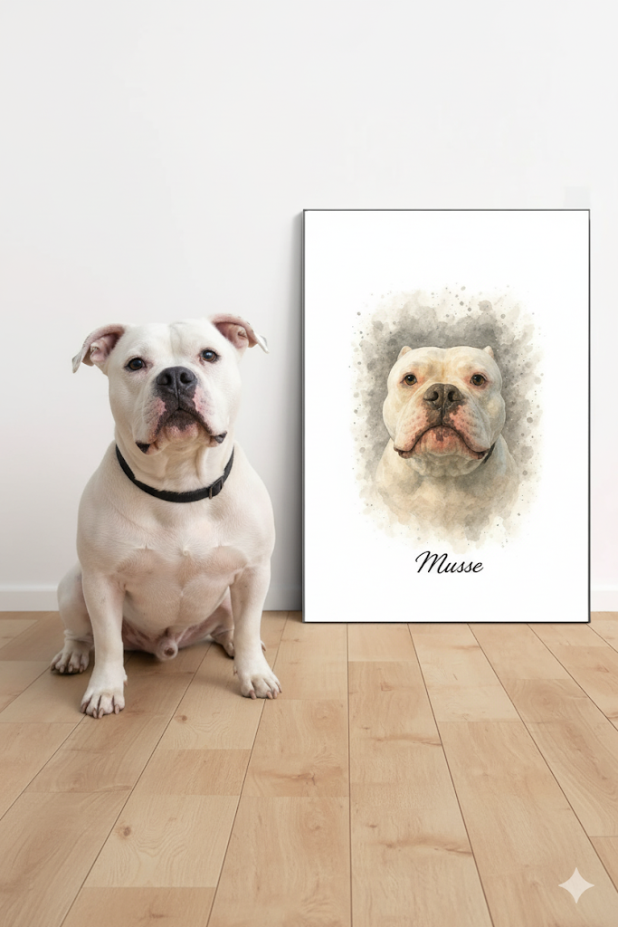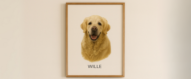 Skriv in hundens namn, välj bakgrund och stil som passar er bäst.